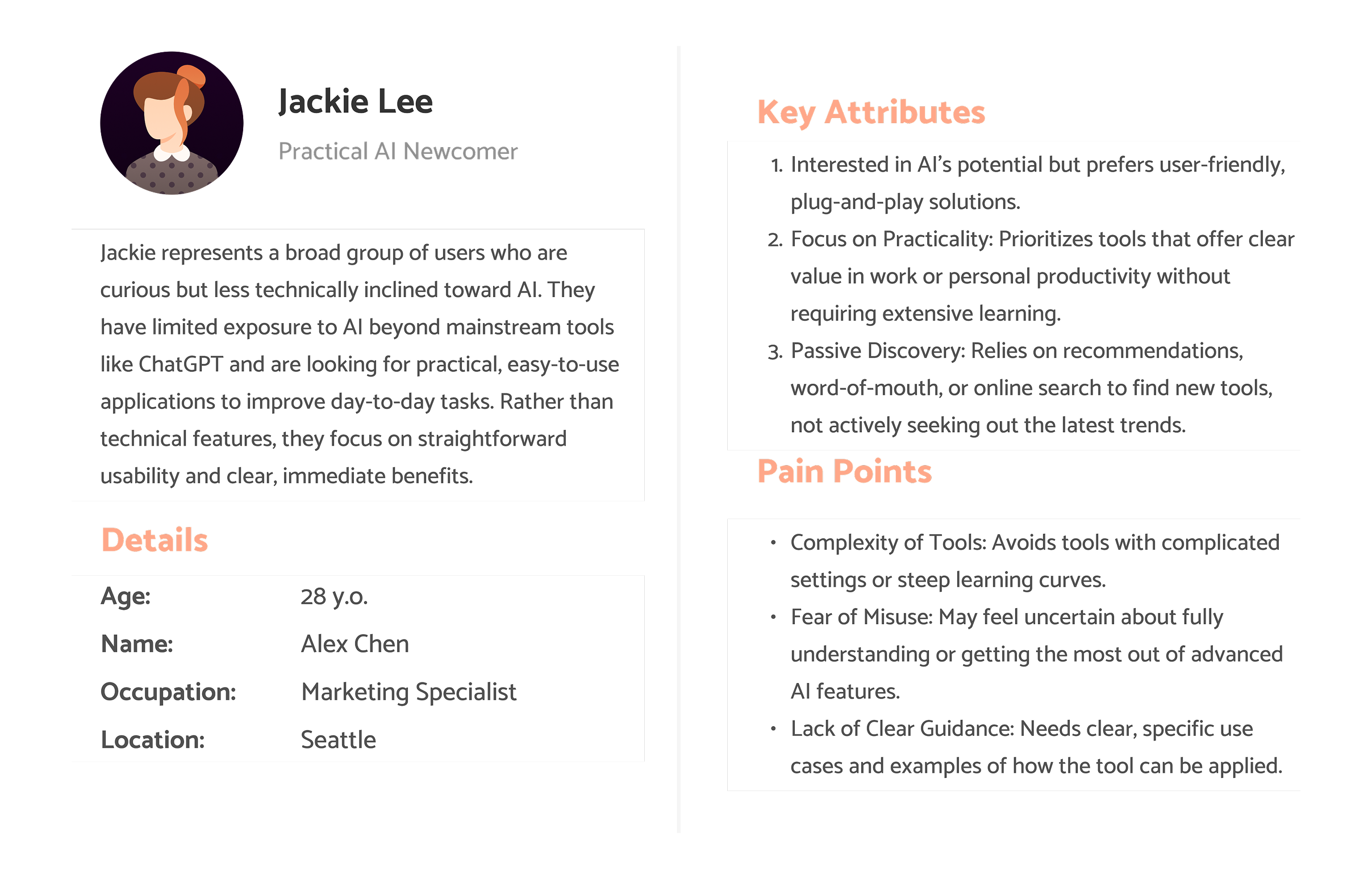 To thoroughly address issues that might hinder user adoption, we revisited our user personas and divided our primary target users into two categories👆: